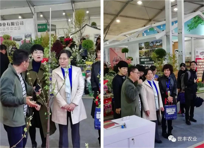 展會現場中國花卉協會副秘書長楊淑豔、山東省林木種苗協會秘書長王大贏、北京林木種苗產業協會秘書長王亮、河北省林木種苗協會秘書長李書戰等相關企事業單位大咖紛紛蒞臨桃子视频APP破解版展位參觀交流,工作人員依次向其介紹了我公司的新優品種及其特點和適合的園林應用案例,參觀領導對我公司的苗木品質認可度極高,並希望能與更多的公司合作,為國家的生態建設、園林的綠化彩化事業做出自己的貢獻。